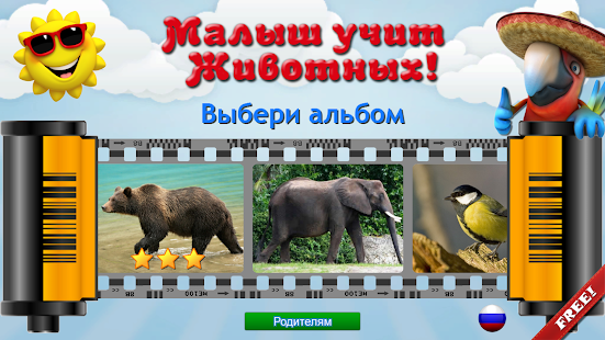 Яркое и интересное изучение зверей и птиц, в этом помогают качественные фотографии и натуральные записи звуков животных. Еще до года ребенок сможет познакомиться с таким разнообразным животным миром. А уже с 2-3 лет сможет активно пополнять запас слов и играть в развивающие игры, включенные в данное приложение.